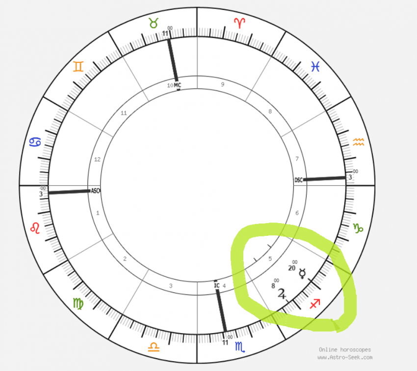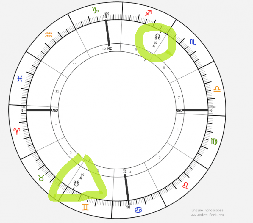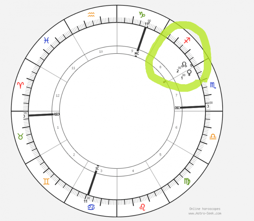 마지막으로 8하우스 북노드에 금성이 있는 차트입니다. 이 사람이 오컬트 관련 사업을 하고 싶다면 가능할까요?