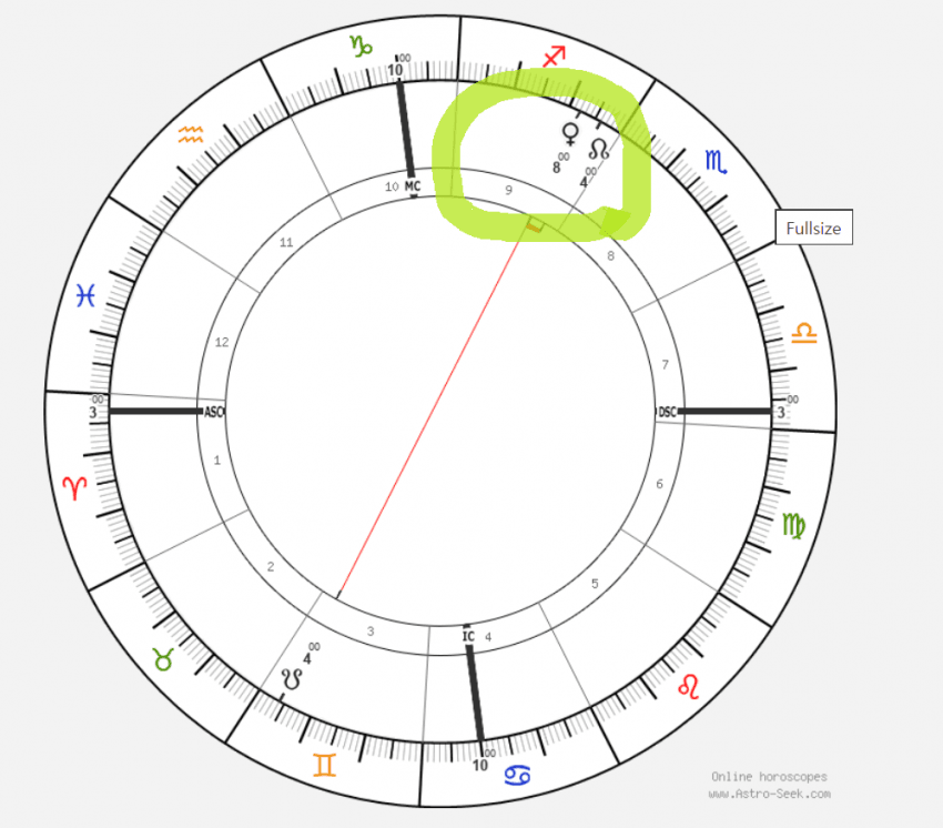위 차트를 보면 9하우스에 금성과 북노드가 붙어있습니다.